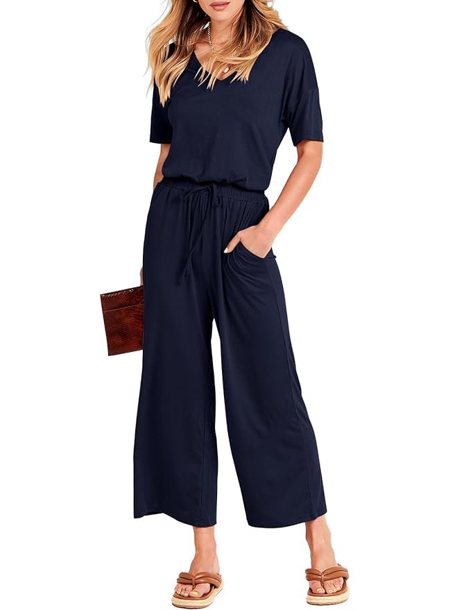Features – Women’s wide leg jumpsuits, v neck, short sleeve, casual sytle, summer trendy. This women’s summer Cropped Rompers Jumpsuits perfect for daily wear, office, outdoor.