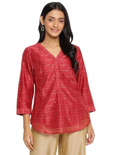 Fabindia Women Cotton Linen Blue Solid Lapel Collar Slim Fit Top