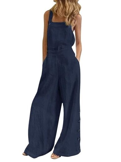 Layfuz Fashion Women Solid Color Jumpsuit Sleeveless Pocket Zipper Button Loose Casual Romper Overall Playsuit
