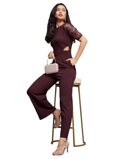 Miss Chase Women's Half Sleeve Solid Waist Cut-Out Regular Length Pocketed Jumpsuit