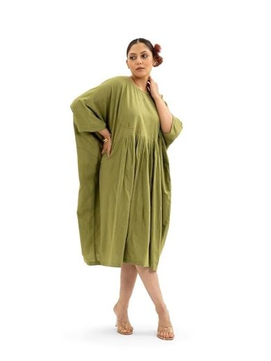 MIORAH Sophisticated Kaftan Dress Crafted from Premium Slub Cotton with Delicate Hand Thread Embroidery for Women & Girls