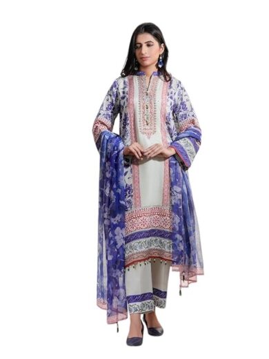 THE COTTON LAWN SHOP Women's 3 Piece Cotton Floral Stylish Printed Unstitched Salwar Suit Dupatta With Embroidered lace Dress Material (White)