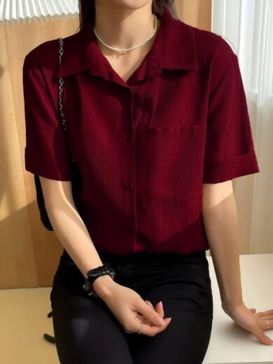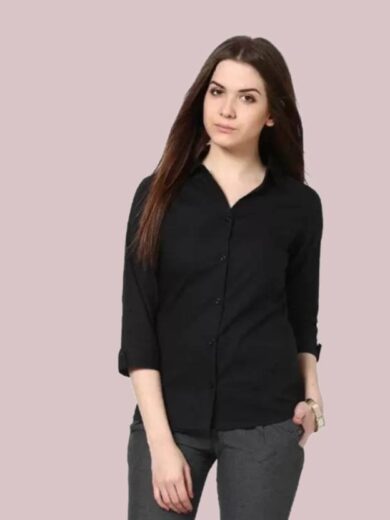 Women Regular Fit Solid Spread Collar Casual Shirt